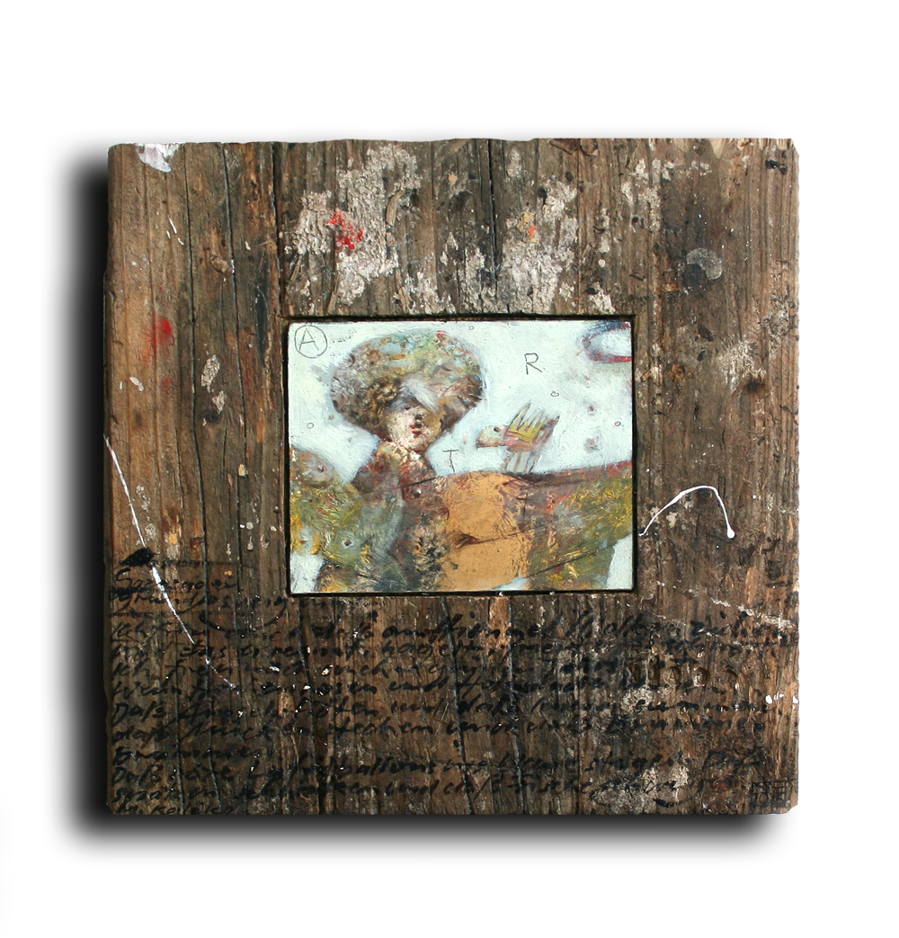 Mit einem Gedicht von M. Kaléko. Ölfarbe auf Holzmalfläche, eingepasst und im Holzblock 27x30,5 cm verleimt, Tiefe 5 cm. | 2025